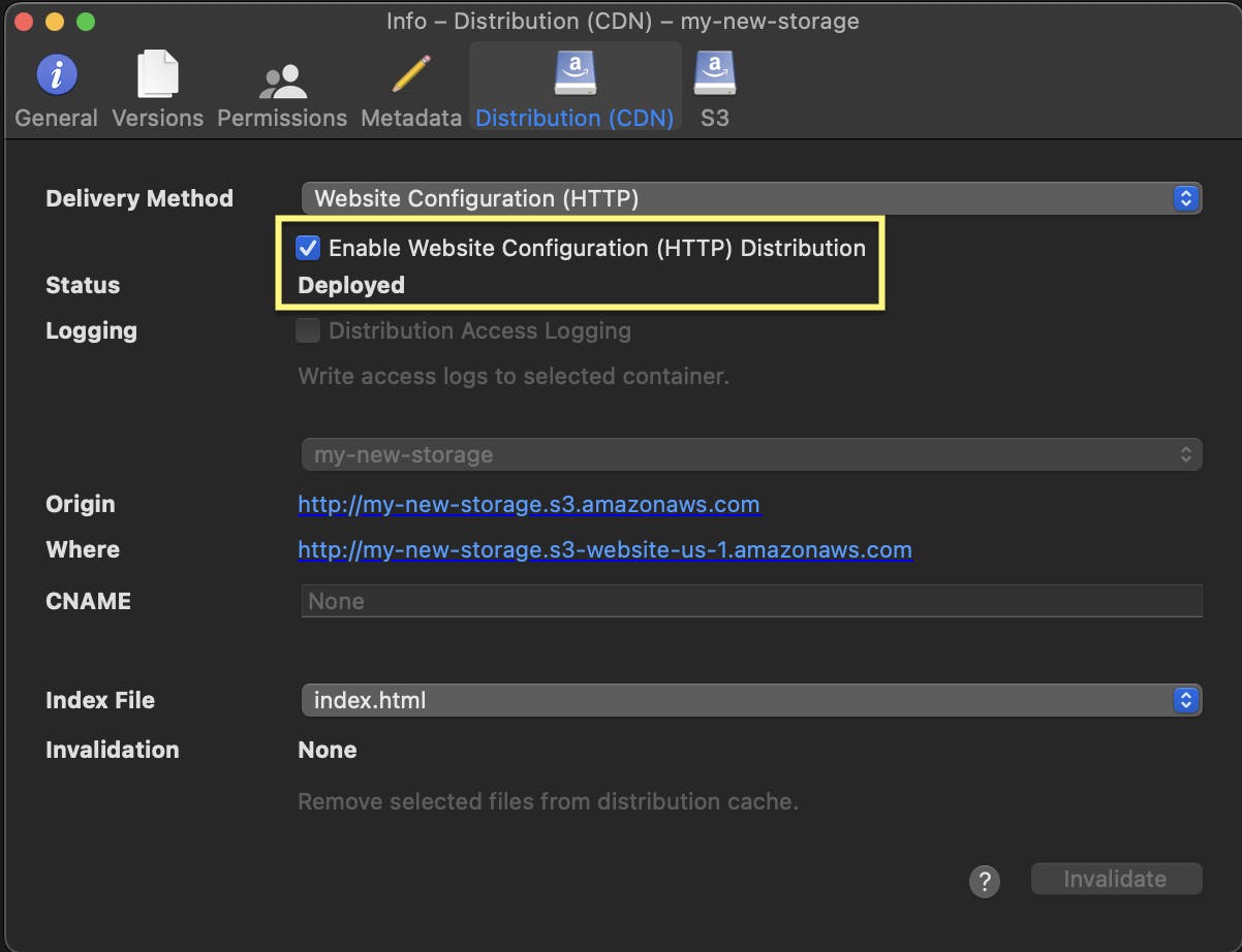 - Select the “Enable Website Configuration (HTTP) Distribution”.