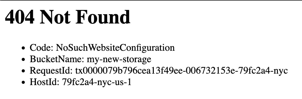 If you encounter this error, it means that the bucket WebsiteConfiguration is missing or misconfigured.