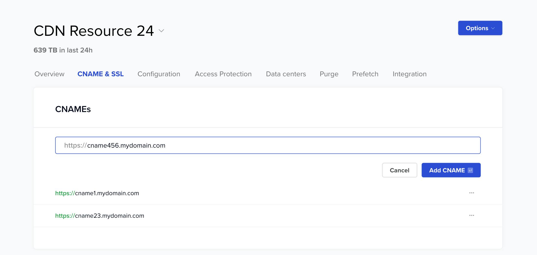 CNAME is technically an alias for a different URL, so instead of using the CDN URL looking like “1234567890.rsc.cdn77.org” for your implementation, you can just use something like “cdn.example.com”. You can add a new CNAME in a few steps: