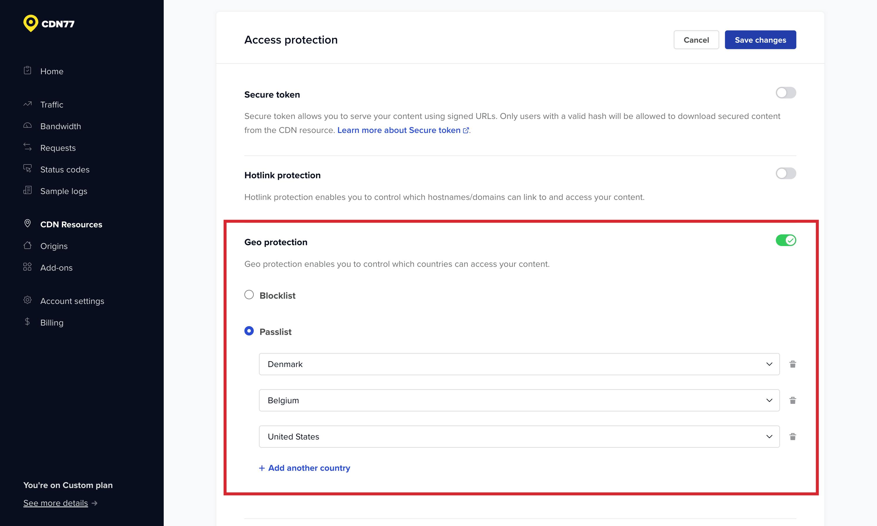 When it comes to allowing or blocking specific users or countries, a simple deny/allow rule has you covered.