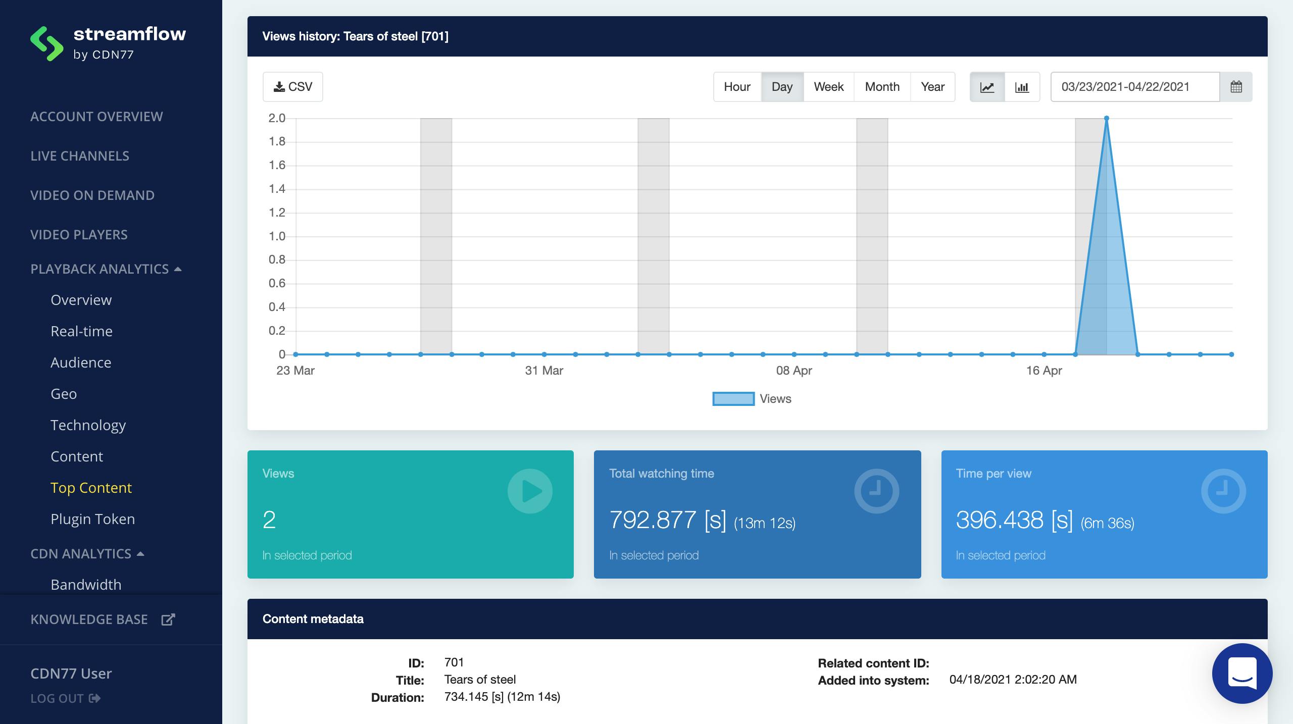 Once the player is set properly, it would be possible for you to use the “Playback Analytics” section on Streamflow to access in-depth analytics about the content you are streaming.